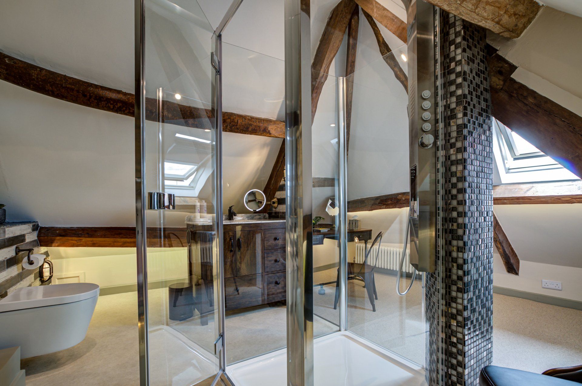 Two luxury bedrooms, both en-suite; large family kitchen, formerly the town's post office mailing rooms. Comfortable and spacious living room. Perfect for families and friends alike. Private enclosed courtyard garden.